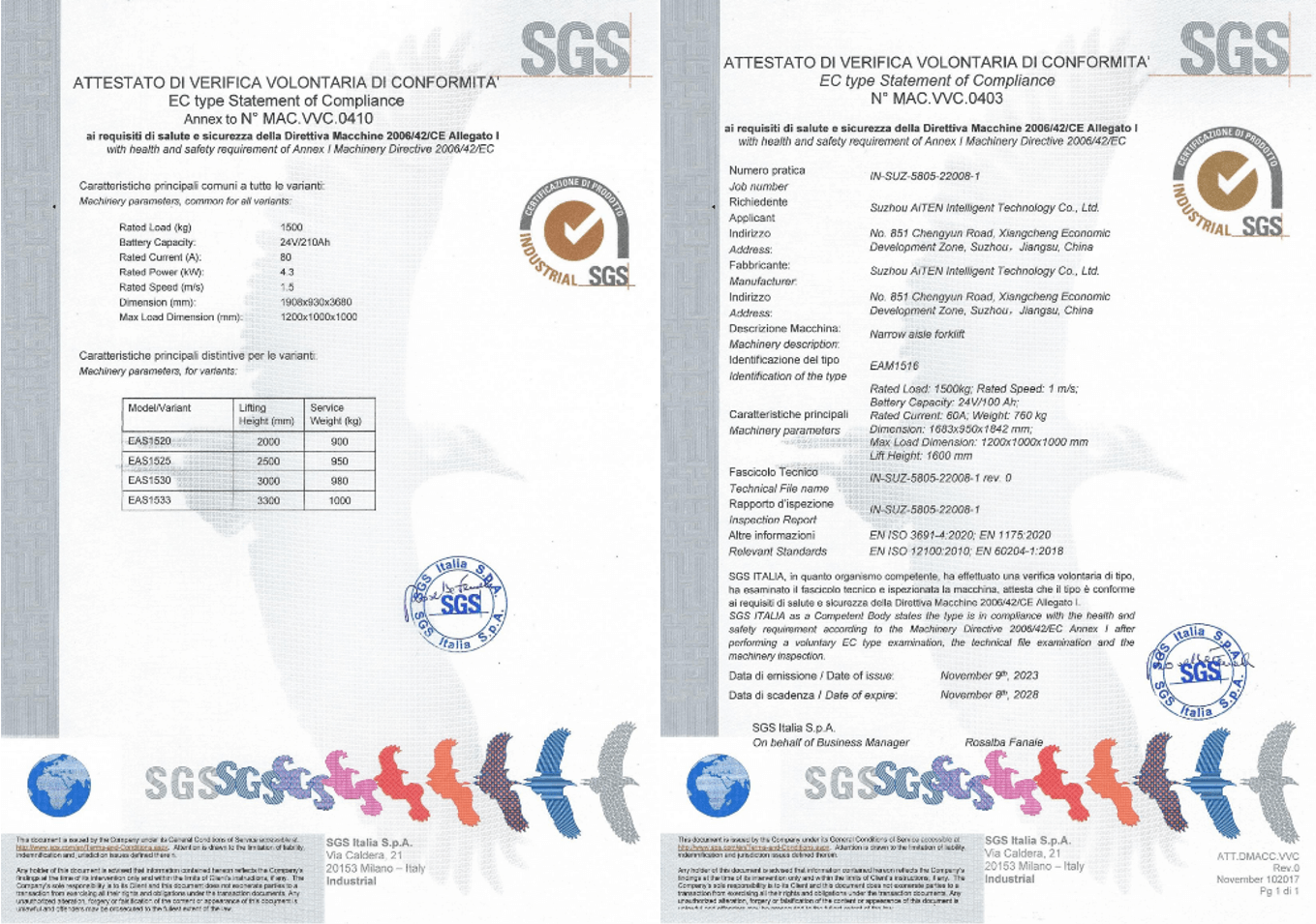 3. CE 标志(欧盟): 确保符合机械指令,强调对繁忙仓库等动态环境的风险评估,在这些环境中,叉车与行人和手动设备相互作用。为满足欧洲市场的法规要求,milan.com产品经过严格审核,为包括 MP10AM1516AE15、AS15 和其他产品在内的 AGV 产品获得了欧盟 CE 证书。